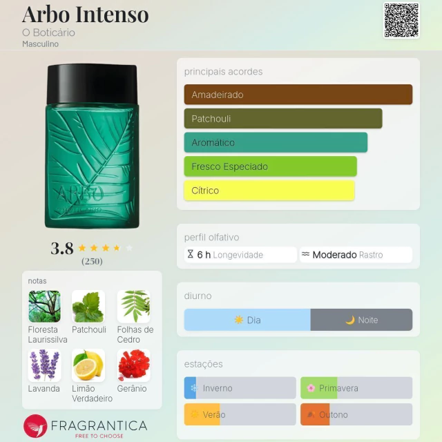 O Perfume Arbo Intenso Masculino é a escolha perfeita para o homem que busca uma fragrância marcante e envolvente. Com notas intensas e amadeiradas, ele exala confiança e sofisticação em cada aplicação. Sua fixação prolongada garante um aroma duradouro, ideal para o dia a dia ou ocasiões especiais. Destaque-se com estilo e personalidade única usando o Arbo Intenso!