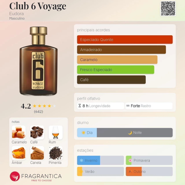 O Perfume Club 6 Voyage Eudora é a escolha perfeita para quem busca uma fragrância marcante e cheia de personalidade. Com uma composição envolvente e exclusiva, proporciona fixação prolongada que destaca seu estilo com sofisticação e charme. Ideal para qualquer ocasião, o Club 6 Voyage é o toque final para quem deseja impressionar com um aroma irresistível. Descubra a elegância única que só a Eudora oferece!