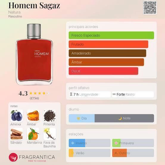 O Perfume Natura Homem Sagaz é a escolha ideal para o homem moderno que busca uma fragrância marcante e sofisticada. Com notas amadeiradas e frescas, ele exala confiança e elegância em cada aplicação. Sua fixação prolongada garante um aroma intenso e duradouro, perfeito para o dia a dia ou ocasiões especiais. Descubra o poder e a personalidade única do Natura Homem Sagaz e destaque-se com estilo!